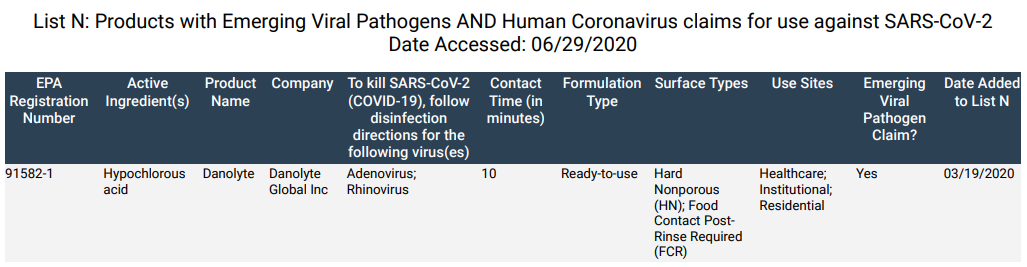 The only active ingredient in Scienco Danolyte® (hypochlorous acid) has been approved by the USDA for use as an algaecide, disinfectant, and sanitizer in organic crop and livestock production, and for use in disinfecting and sanitizing equipment and facilities in organic handling and processing. Scienco Danolyte meets the requirement of the FDA and USDA for a non-rinse sanitizing solution.